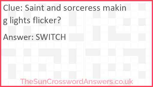 Saint and sorceress making lights flicker? is a crossword clue for which we have 1 possible answer and we have spotted 1 times in our database. This crossword clue was last seen on 02 May 2023 in The Sun Cryptic Crossword puzzle!