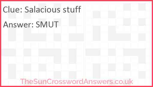 Salacious stuff is a crossword clue for which we have 1 possible answer and we have spotted 6 times in our database. This crossword clue was last seen on 09 August 2024 in The Sun Coffee Time Crossword puzzle!