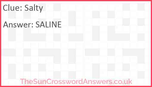 Salty is a crossword clue for which we have 1 possible answer and we have spotted 2 times in our database. This crossword clue was last seen on 16 March 2025 in The Sun Coffee Time Crossword puzzle!