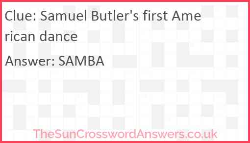 Samuel Butler's first American dance is a crossword clue for which we have 1 possible answer and we have spotted 3 times in our database. This crossword clue was last seen on 25 February 2024 in The Sun Cryptic Crossword puzzle!