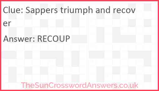 Sappers triumph and recover is a crossword clue for which we have 1 possible answer and we have spotted 1 times in our database. This crossword clue was last seen on 05 December 2022 in The Sun Cryptic Crossword puzzle!
