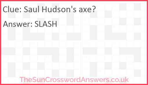 Saul Hudson's axe? is a crossword clue for which we have 1 possible answer and we have spotted 1 times in our database. This crossword clue was last seen on 30 May 2024 in The Sun Cryptic Crossword puzzle!