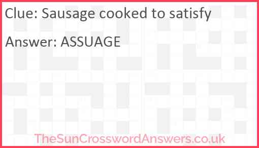 Sausage cooked to satisfy is a crossword clue for which we have 1 possible answer and we have spotted 2 times in our database. This crossword clue was last seen on 09 September 2024 in The Sun Cryptic Crossword puzzle!