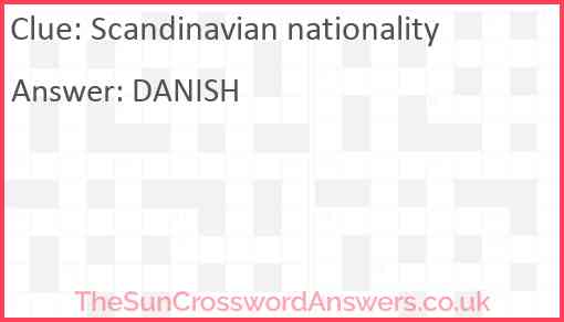 Scandinavian nationality is a crossword clue for which we have 1 possible answer and we have spotted 2 times in our database. This crossword clue was last seen on 09 October 2023 in The Sun Coffee Time Crossword puzzle!