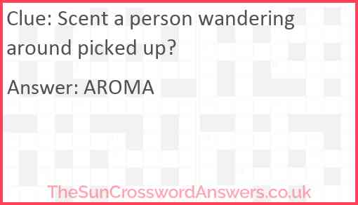 Scent a person wandering around picked up? is a crossword clue for which we have 1 possible answer and we have spotted 1 times in our database. This crossword clue was last seen on 27 October 2024 in The Sun Cryptic Crossword puzzle!