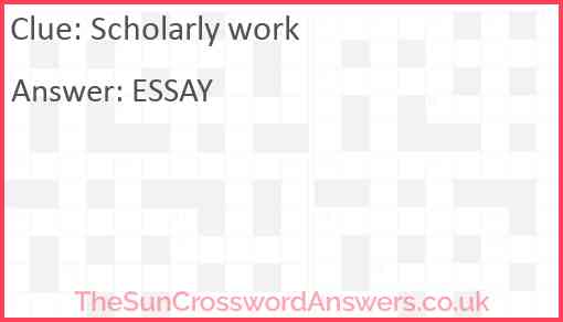 Scholarly work is a crossword clue for which we have 1 possible answer and we have spotted 6 times in our database. This crossword clue was last seen on 29 October 2023 in The Sun Coffee Time Crossword puzzle!
