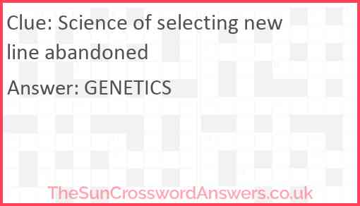 Science of selecting new line abandoned is a crossword clue for which we have 1 possible answer and we have spotted 2 times in our database. This crossword clue was last seen on 20 July 2025 in The Sun Cryptic Crossword puzzle!
