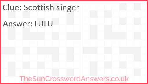 Scottish singer is a crossword clue for which we have 1 possible answer and we have spotted 1 times in our database. This crossword clue was last seen on 23 April 2021 in The Sun Coffee Time Crossword puzzle!
