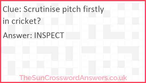 Scrutinise pitch firstly in cricket? is a crossword clue for which we have 1 possible answer and we have spotted 2 times in our database. This crossword clue was last seen on 13 October 2022 in The Sun Cryptic Crossword puzzle!