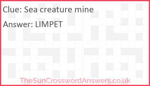 Sea creature mine is a crossword clue for which we have 1 possible answer and we have spotted 2 times in our database. This crossword clue was last seen on 10 October 2022 in The Sun Cryptic Crossword puzzle!