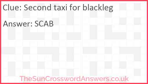 Second taxi for blackleg is a crossword clue for which we have 1 possible answer and we have spotted 4 times in our database. This crossword clue was last seen on 06 October 2024 in The Sun Cryptic Crossword puzzle!