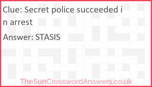 Secret police succeeded in arrest is a crossword clue for which we have 1 possible answer and we have spotted 2 times in our database. This crossword clue was last seen on 25 May 2025 in The Sun Cryptic Crossword puzzle!