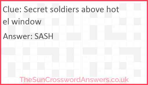Secret soldiers above hotel window is a crossword clue for which we have 1 possible answer and we have spotted 1 times in our database. This crossword clue was last seen on 08 November 2024 in The Sun Cryptic Crossword puzzle!