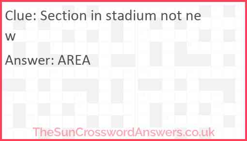 Section in stadium not new is a crossword clue for which we have 1 possible answer and we have spotted 4 times in our database. This crossword clue was last seen on 03 November 2023 in The Sun Cryptic Crossword puzzle!