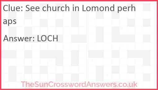 See church in Lomond perhaps is a crossword clue for which we have 1 possible answer and we have spotted 1 times in our database. This crossword clue was last seen on 31 May 2020 in The Sun Cryptic Crossword puzzle!