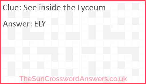 See inside the Lyceum is a crossword clue for which we have 1 possible answer and we have spotted 3 times in our database. This crossword clue was last seen on 05 October 2023 in The Sun Cryptic Crossword puzzle!