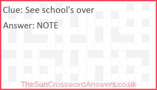 See school's over is a crossword clue for which we have 1 possible answer and we have spotted 1 times in our database. This crossword clue was last seen on 14 March 2023 in The Sun Cryptic Crossword puzzle!