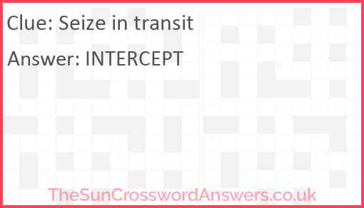 Seize in transit is a crossword clue for which we have 1 possible answer and we have spotted 1 times in our database. This crossword clue was last seen on 15 February 2025 in The Sun Coffee Time Crossword puzzle!