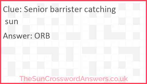 Senior barrister catching sun is a crossword clue for which we have 1 possible answer and we have spotted 1 times in our database. This crossword clue was last seen on 26 March 2020 in The Sun Cryptic Crossword puzzle!