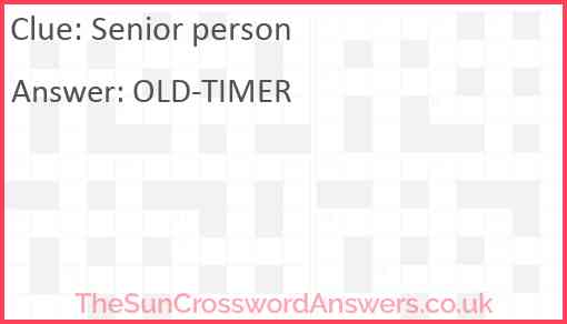 Senior person is a crossword clue for which we have 2 possible answer and we have spotted 3 times in our database. This crossword clue was last seen on 14 November 2022 in The Sun Coffee Time Crossword puzzle!