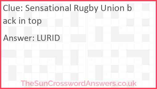 Sensational Rugby Union back in top is a crossword clue for which we have 1 possible answer and we have spotted 4 times in our database. This crossword clue was last seen on 24 March 2023 in The Sun Cryptic Crossword puzzle!