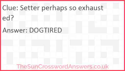 Setter perhaps so exhausted? is a crossword clue for which we have 1 possible answer and we have spotted 2 times in our database. This crossword clue was last seen on 31 December 2024 in The Sun Cryptic Crossword puzzle!
