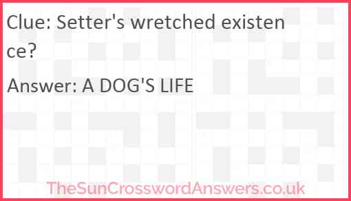 Setter's wretched existence? is a crossword clue for which we have 2 possible answer and we have spotted 2 times in our database. This crossword clue was last seen on 06 January 2023 in The Sun Cryptic Crossword puzzle!