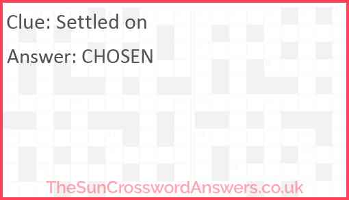 Settled on is a crossword clue for which we have 1 possible answer and we have spotted 1 times in our database. This crossword clue was last seen on 05 May 2020 in The Sun Coffee Time Crossword puzzle!