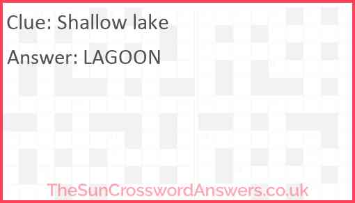 Shallow lake is a crossword clue for which we have 1 possible answer and we have spotted 9 times in our database. This crossword clue was last seen on 01 August 2023 in The Sun Coffee Time Crossword puzzle!