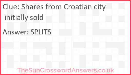 Shares from Croatian city initially sold is a crossword clue for which we have 1 possible answer and we have spotted 2 times in our database. This crossword clue was last seen on 21 August 2023 in The Sun Cryptic Crossword puzzle!