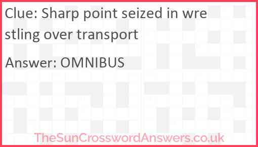 Sharp point seized in wrestling over transport is a crossword clue for which we have 1 possible answer and we have spotted 2 times in our database. This crossword clue was last seen on 06 July 2023 in The Sun Cryptic Crossword puzzle!