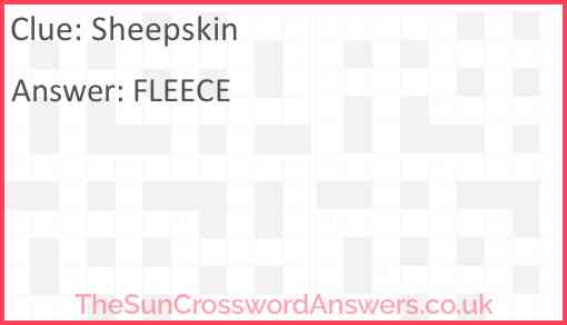 Sheepskin is a crossword clue for which we have 1 possible answer and we have spotted 17 times in our database. This crossword clue was last seen on 10 June 2025 in The Sun Coffee Time Crossword puzzle!