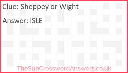 Sheppey or Wight is a crossword clue for which we have 1 possible answer and we have spotted 1 times in our database. This crossword clue was last seen on 25 December 2024 in The Sun Coffee Time Crossword puzzle!