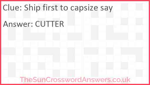 Ship first to capsize say is a crossword clue for which we have 1 possible answer and we have spotted 3 times in our database. This crossword clue was last seen on 20 October 2024 in The Sun Cryptic Crossword puzzle!