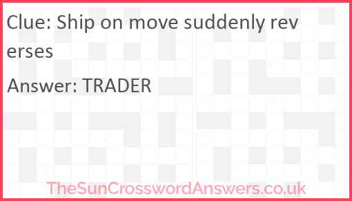 Ship on move suddenly reverses is a crossword clue for which we have 1 possible answer and we have spotted 3 times in our database. This crossword clue was last seen on 08 October 2023 in The Sun Cryptic Crossword puzzle!