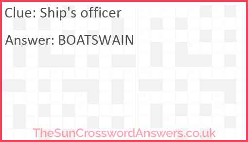 Ship's officer is a crossword clue for which we have 1 possible answer and we have spotted 6 times in our database. This crossword clue was last seen on 04 August 2024 in The Sun Coffee Time Crossword puzzle!