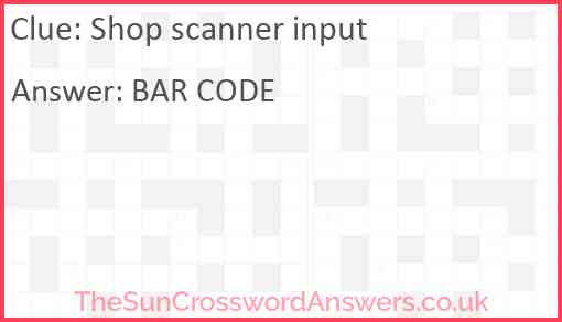 Shop scanner input is a crossword clue for which we have 2 possible answer and we have spotted 2 times in our database. This crossword clue was last seen on 03 June 2023 in The Sun Coffee Time Crossword puzzle!
