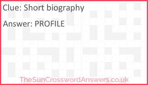 Short biography is a crossword clue for which we have 1 possible answer and we have spotted 1 times in our database. This crossword clue was last seen on 22 October 2018 in The Sun Coffee Time Crossword puzzle!