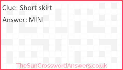 Short skirt is a crossword clue for which we have 1 possible answer and we have spotted 3 times in our database. This crossword clue was last seen on 12 April 2024 in The Sun Coffee Time Crossword puzzle!
