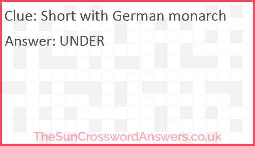 Short with German monarch is a crossword clue for which we have 1 possible answer and we have spotted 1 times in our database. This crossword clue was last seen on 27 December 2021 in The Sun Cryptic Crossword puzzle!