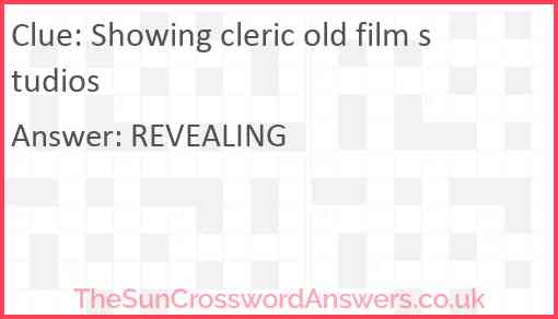 Showing cleric old film studios is a crossword clue for which we have 1 possible answer and we have spotted 1 times in our database. This crossword clue was last seen on 28 April 2024 in The Sun Cryptic Crossword puzzle!