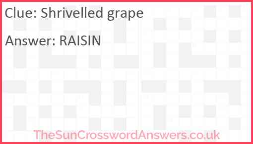 Shrivelled grape is a crossword clue for which we have 1 possible answer and we have spotted 3 times in our database. This crossword clue was last seen on 12 June 2024 in The Sun Coffee Time Crossword puzzle!