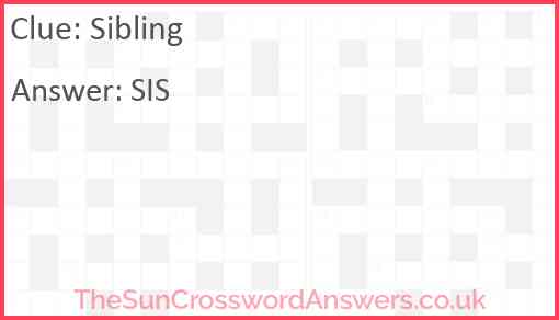 Sibling is a crossword clue for which we have 1 possible answer and we have spotted 3 times in our database. This crossword clue was last seen on 24 July 2025 in The Sun Coffee Time Crossword puzzle!
