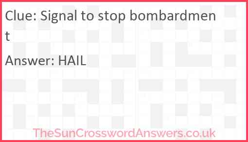 Signal to stop bombardment is a crossword clue for which we have 1 possible answer and we have spotted 1 times in our database. This crossword clue was last seen on 24 January 2025 in The Sun Cryptic Crossword puzzle!