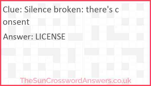 Silence broken: there's consent is a crossword clue for which we have 1 possible answer and we have spotted 2 times in our database. This crossword clue was last seen on 05 April 2025 in The Sun Cryptic Crossword puzzle!