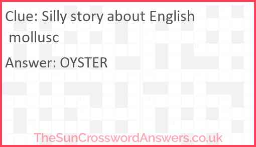 Silly story about English mollusc is a crossword clue for which we have 1 possible answer and we have spotted 2 times in our database. This crossword clue was last seen on 13 March 2021 in The Sun Cryptic Crossword puzzle!