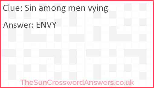 Sin among men vying is a crossword clue for which we have 1 possible answer and we have spotted 2 times in our database. This crossword clue was last seen on 31 July 2022 in The Sun Cryptic Crossword puzzle!