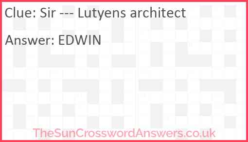 Sir --- Lutyens architect is a crossword clue for which we have 1 possible answer and we have spotted 1 times in our database. This crossword clue was last seen on 26 February 2019 in The Sun Coffee Time Crossword puzzle!