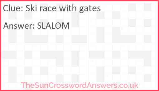 Ski race with gates is a crossword clue for which we have 1 possible answer and we have spotted 1 times in our database. This crossword clue was last seen on 26 January 2019 in The Sun Coffee Time Crossword puzzle!