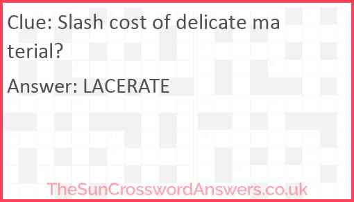 Slash cost of delicate material? is a crossword clue for which we have 1 possible answer and we have spotted 2 times in our database. This crossword clue was last seen on 27 June 2025 in The Sun Cryptic Crossword puzzle!